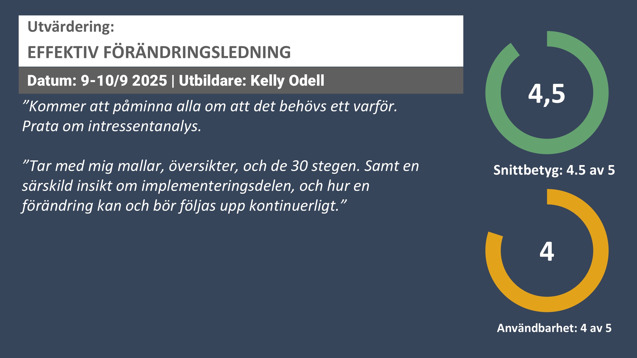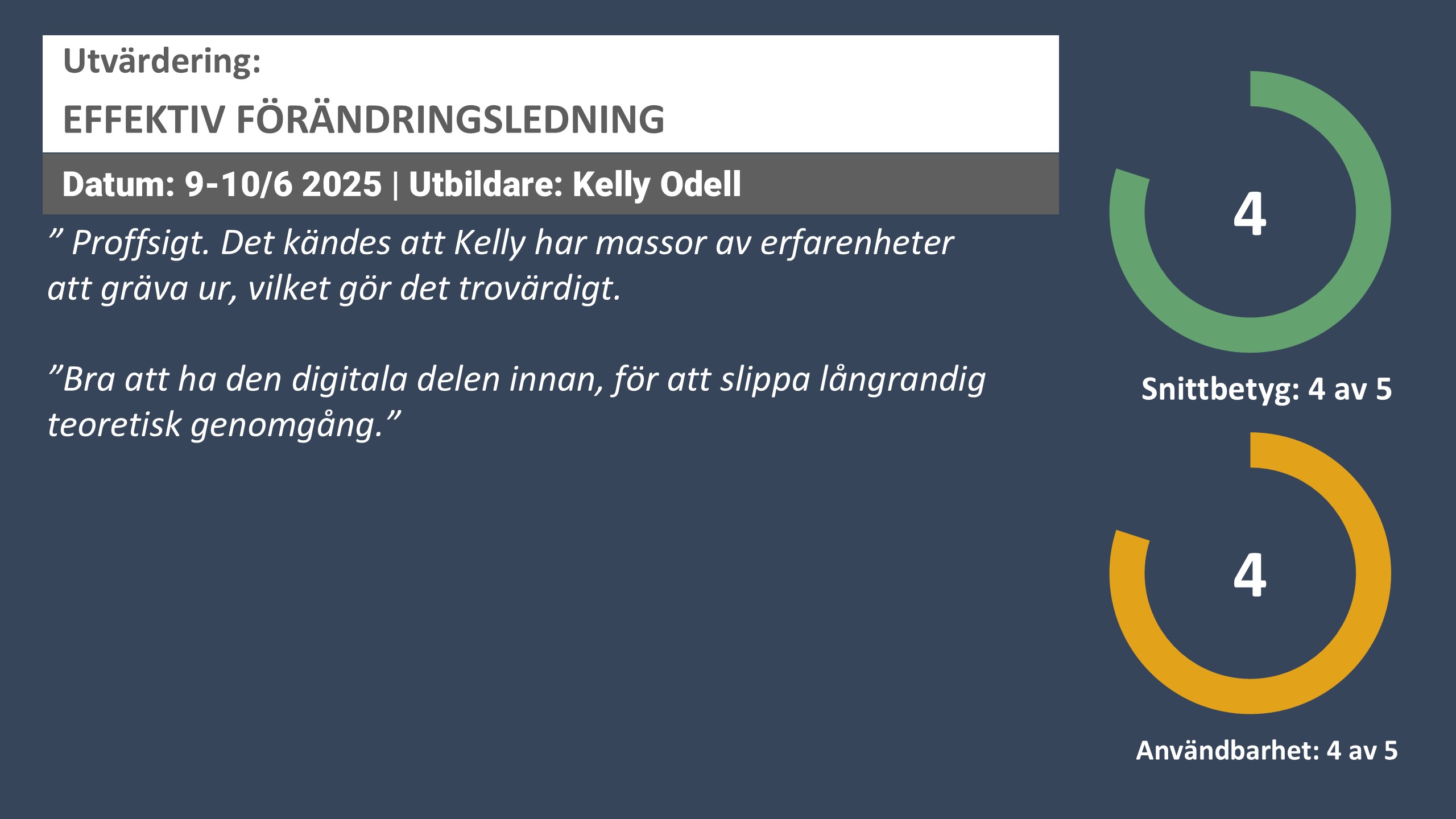 Utöver det digitala kursmaterialet ingår även boken ”Förändringshandboken” av Kelly Odell.