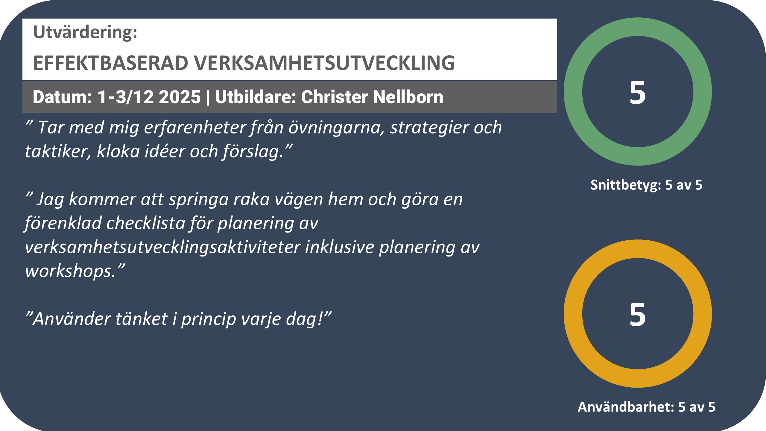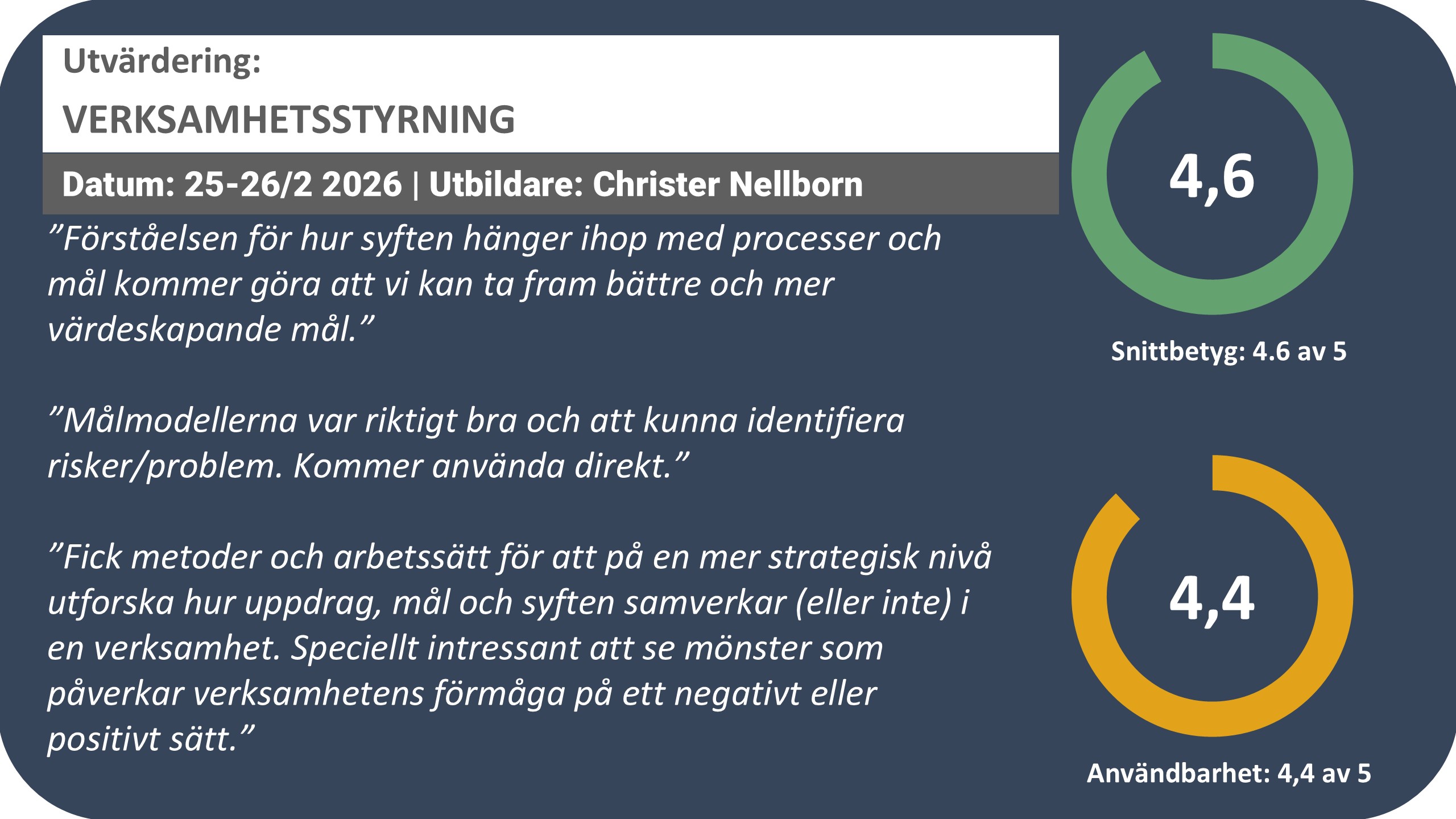 - Ökad förmåga att driva verksamhetsutveckling både strategiskt och operativt